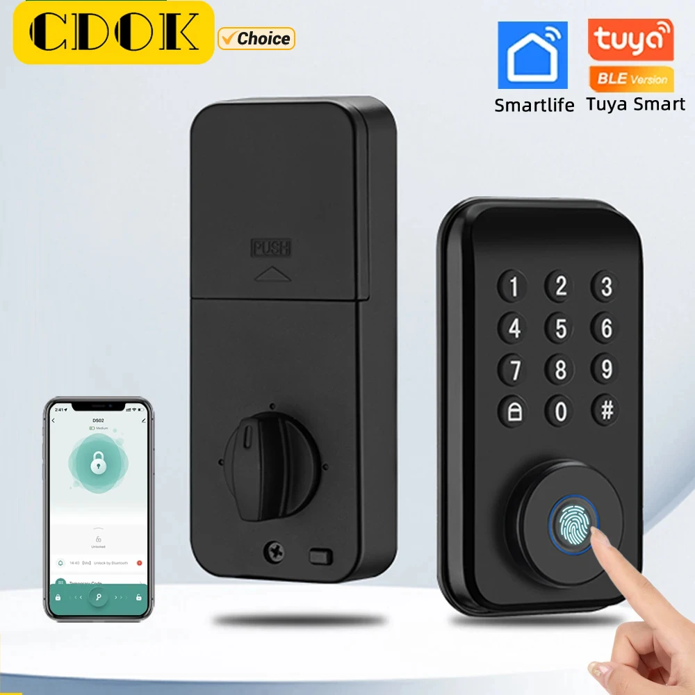 CDOK DS02 Tuya قفل ديدبولت ذكي لبصمة الإصبع مع مزلاج/مستشعر الباب مفتاح قفل تلقائي/كلمة مرور/فتح تطبيق Tuya Smartlife