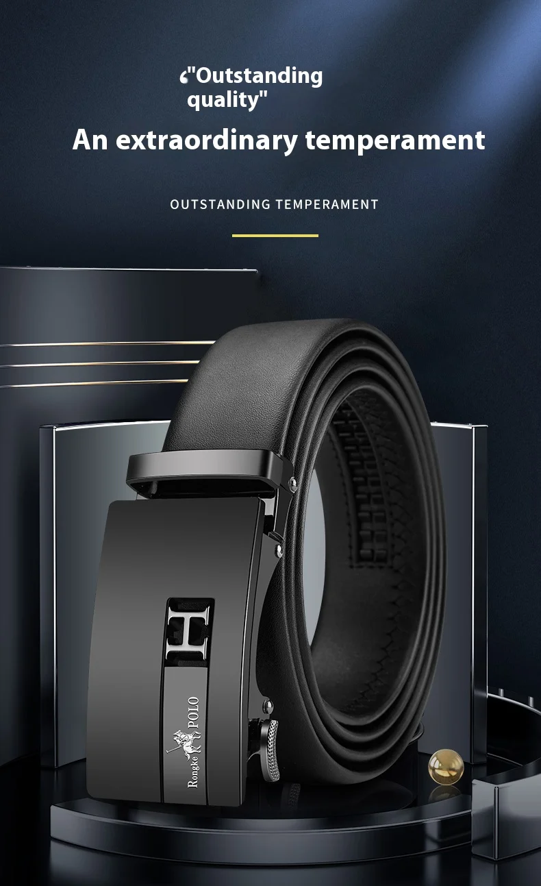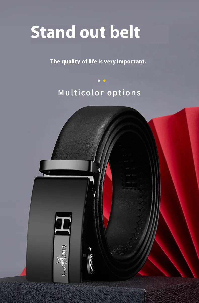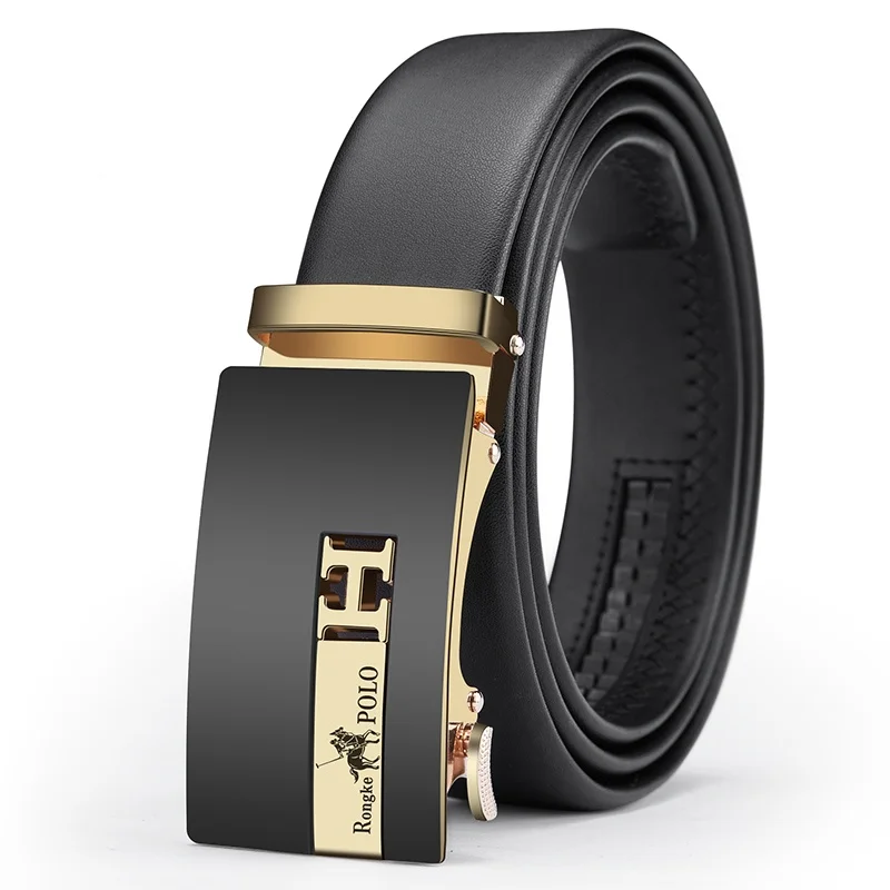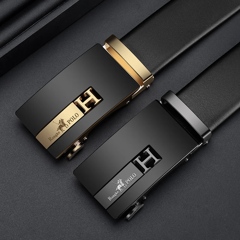 حزام رجالي مصمم أزياء، حزام جلد طبيعي، حزام سقاطة أوتوماتيكي 3.5 سم، حزام ماركة فاخرة للرجال