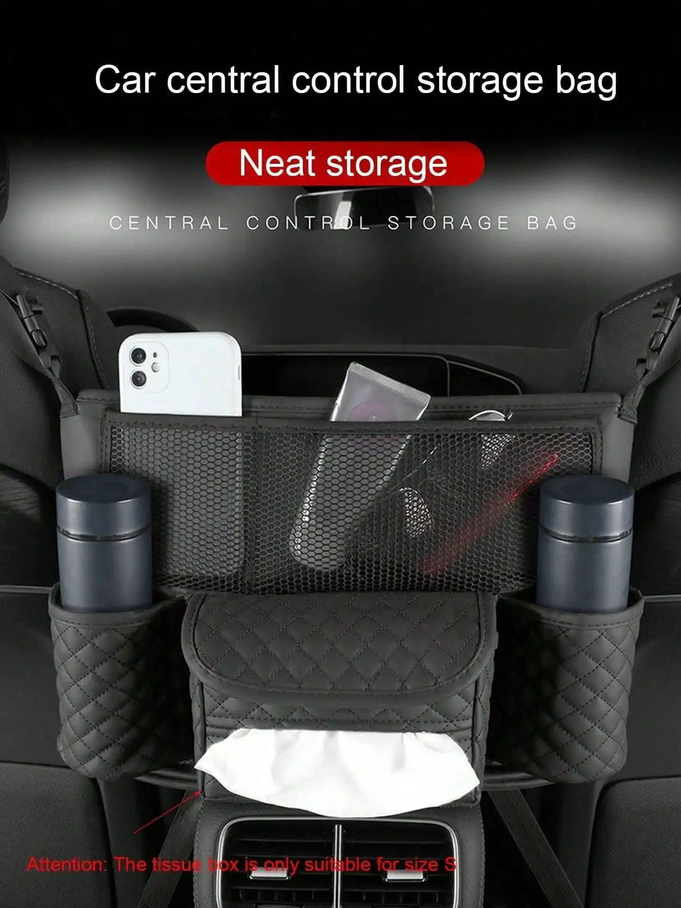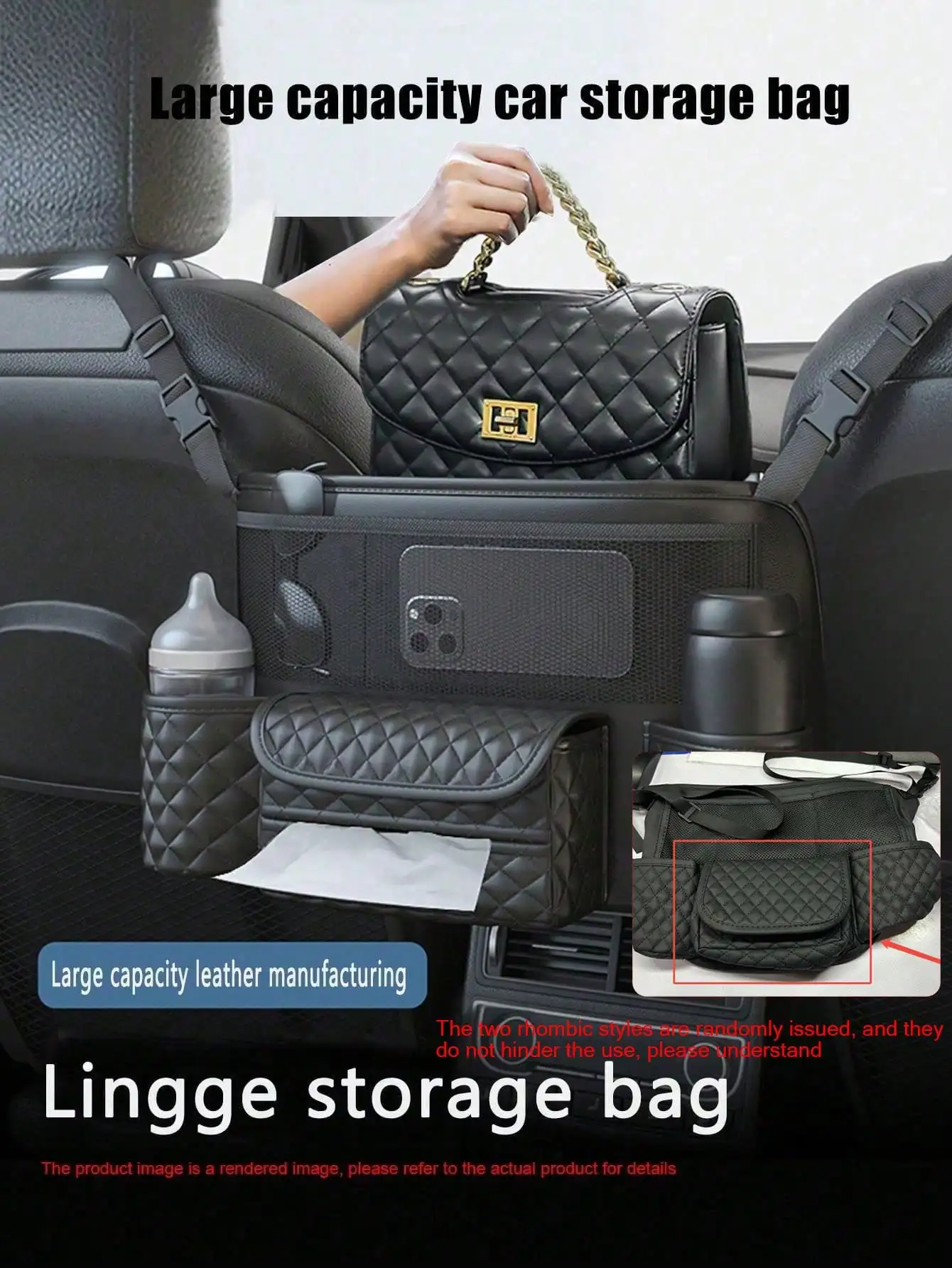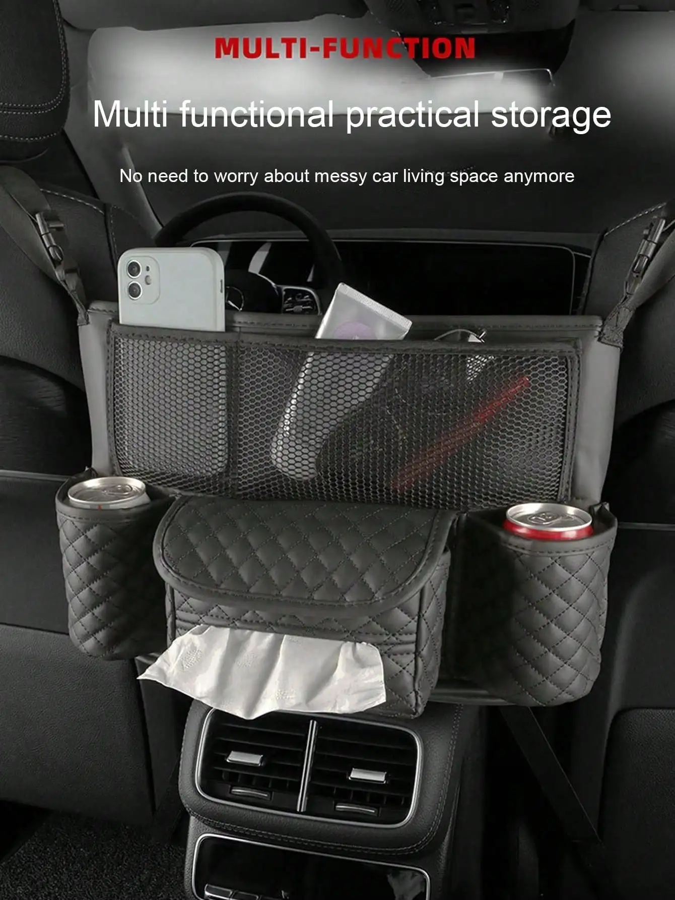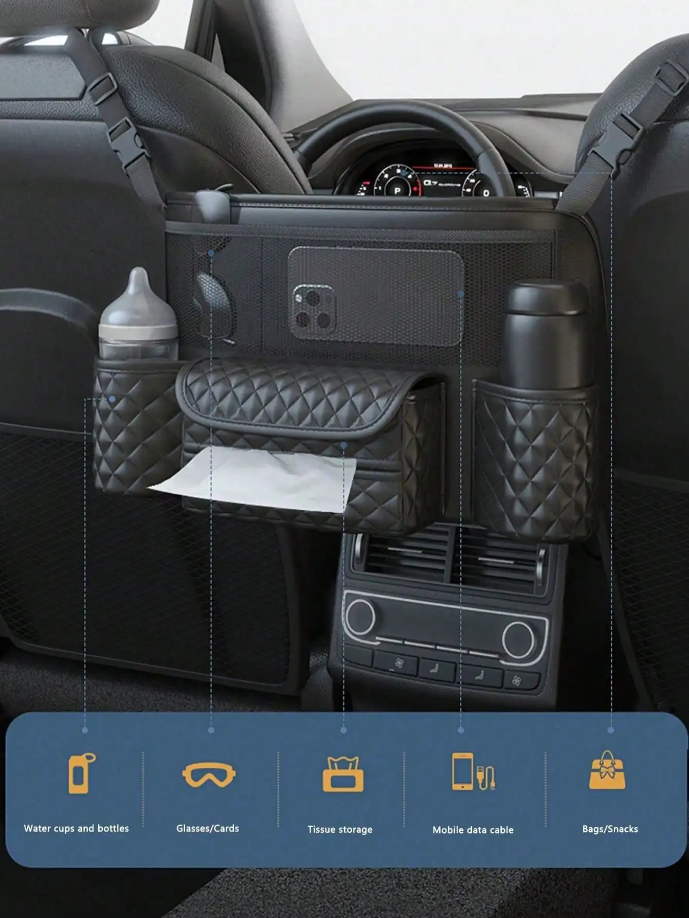 حقيبة تخزين السيارة قطعة واحدة - جيب شبكي بين المقاعد، حقيبة تخزين معلقة للمقعد الخلفي للسيارات، مناسبة لوضع الحقائب، تخزين داخل السيارة