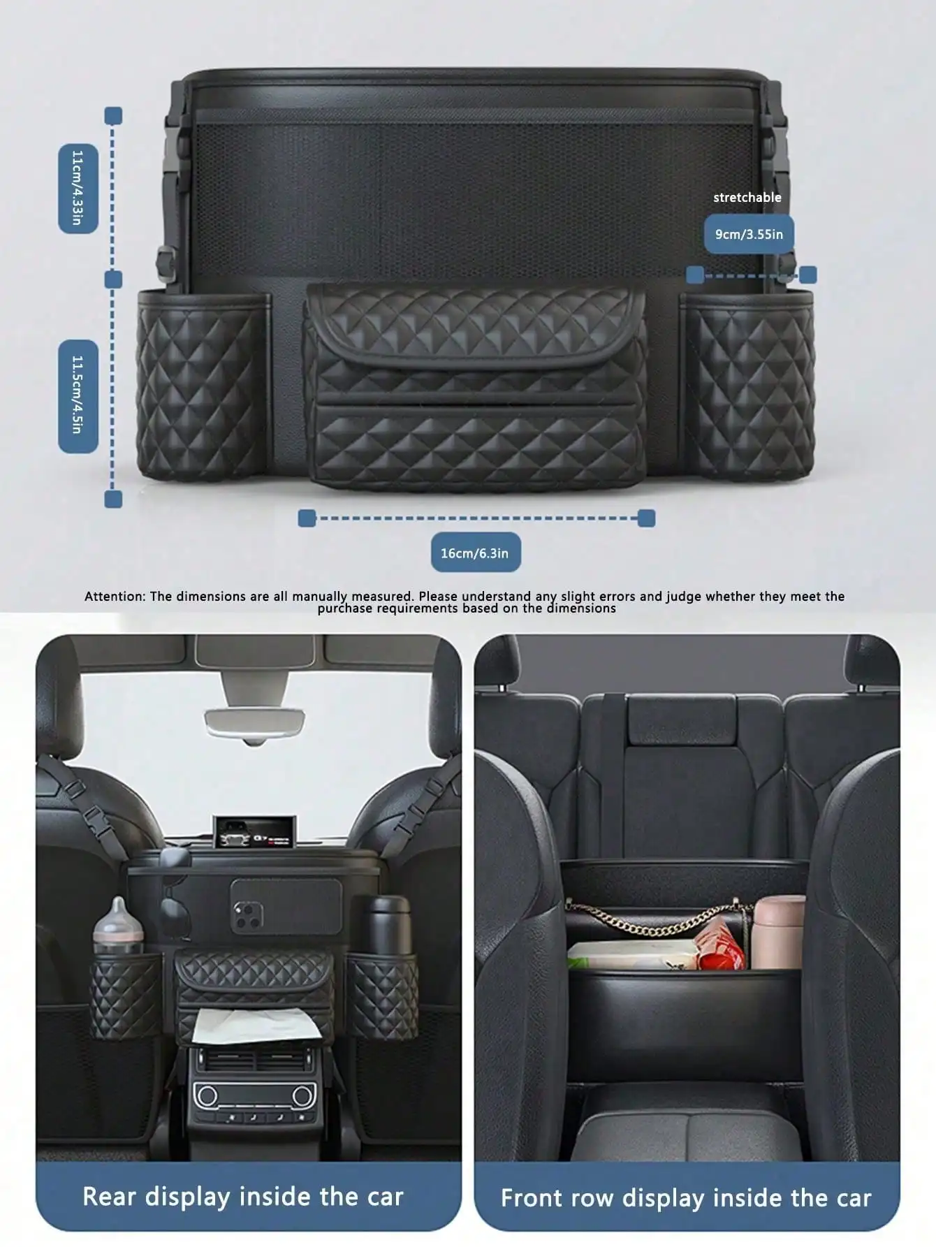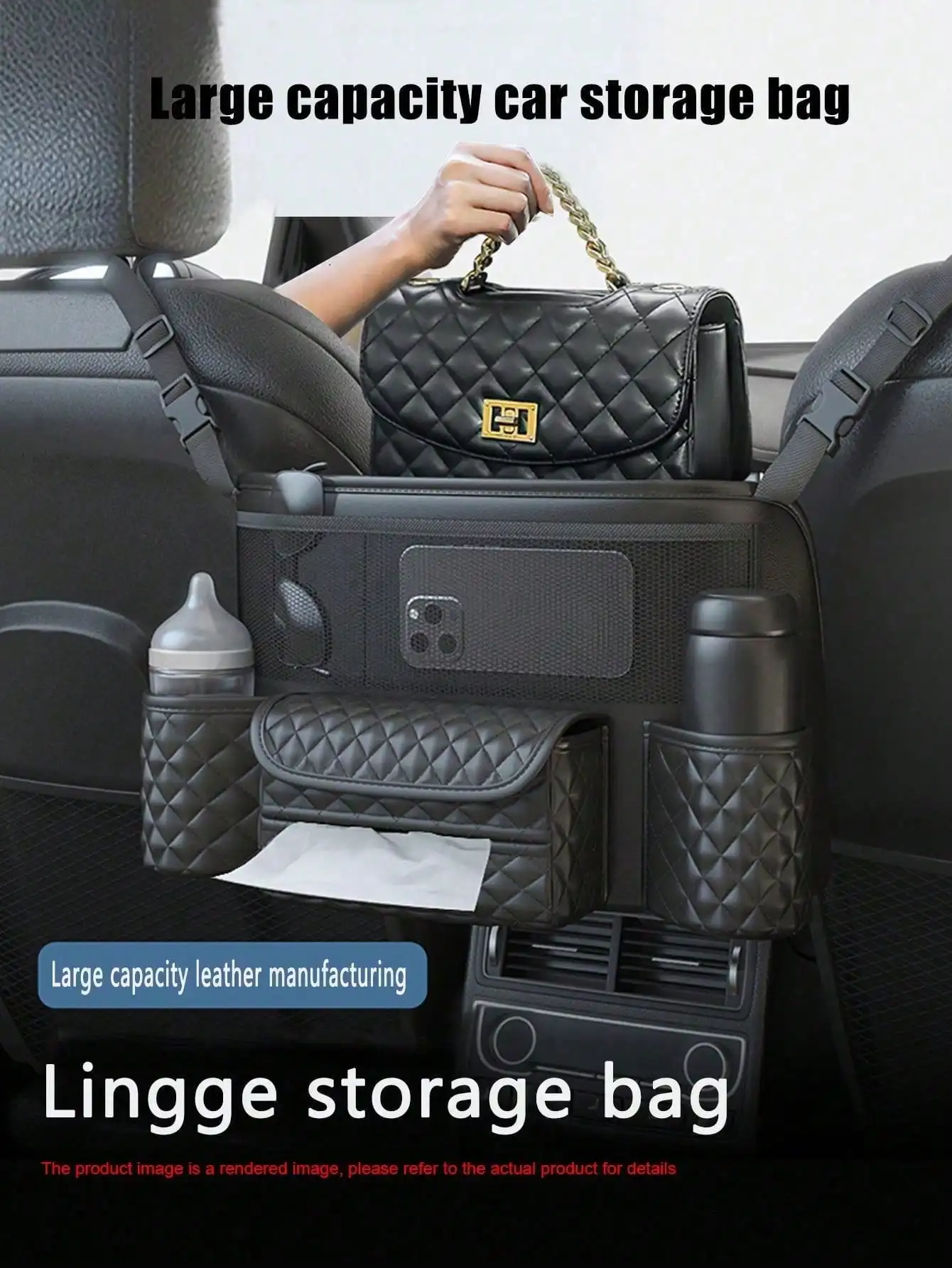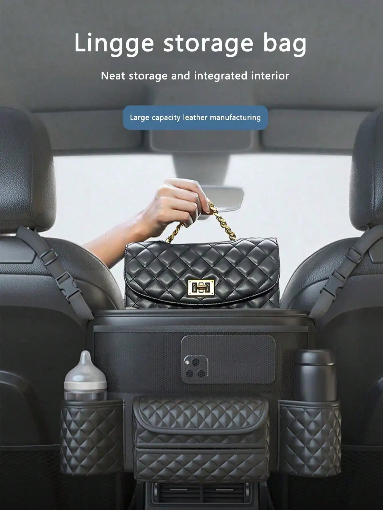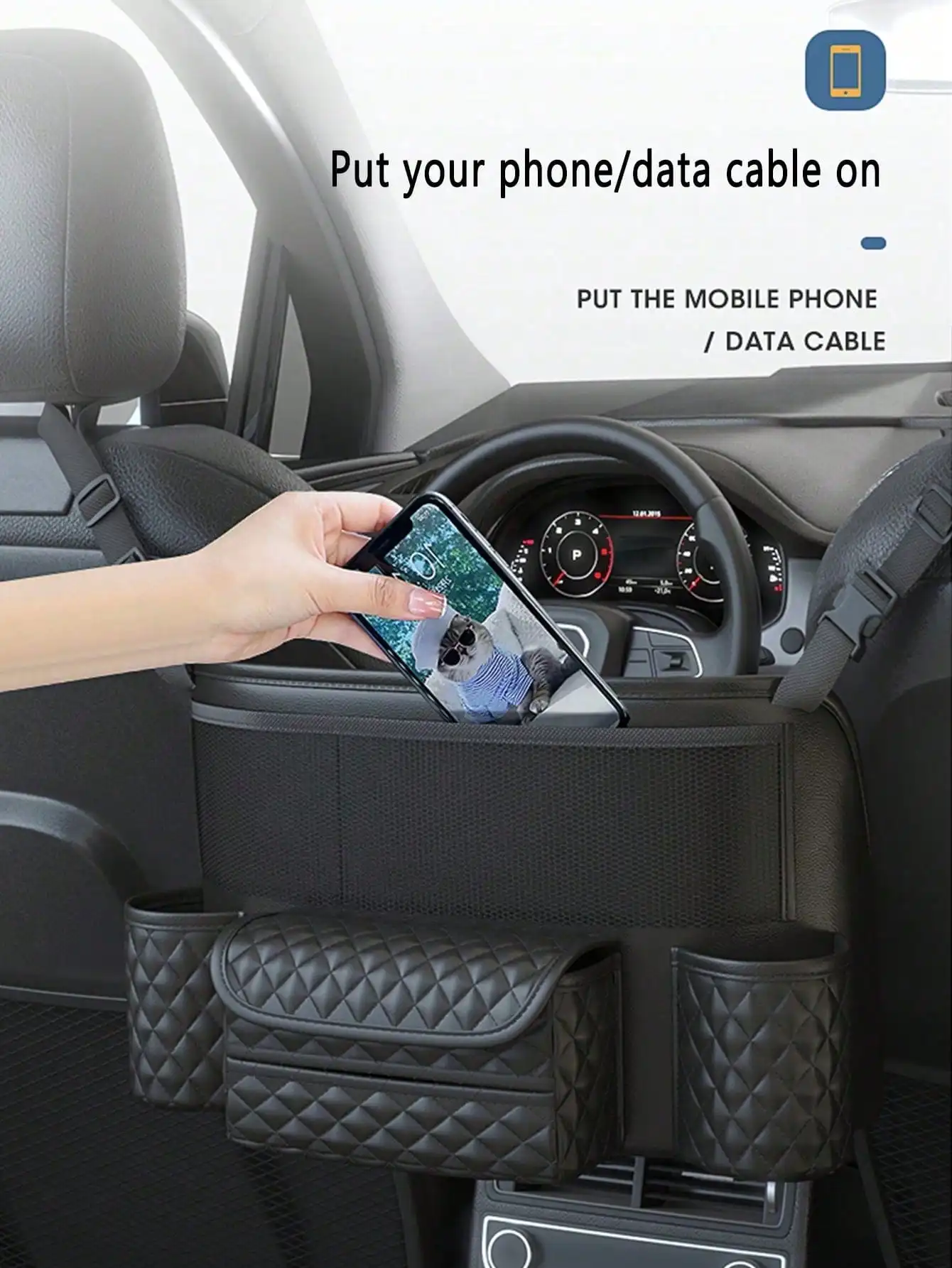 حقيبة تخزين السيارة قطعة واحدة - جيب شبكي بين المقاعد، حقيبة تخزين معلقة للمقعد الخلفي للسيارات، مناسبة لوضع الحقائب، تخزين داخل السيارة