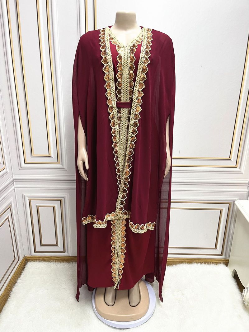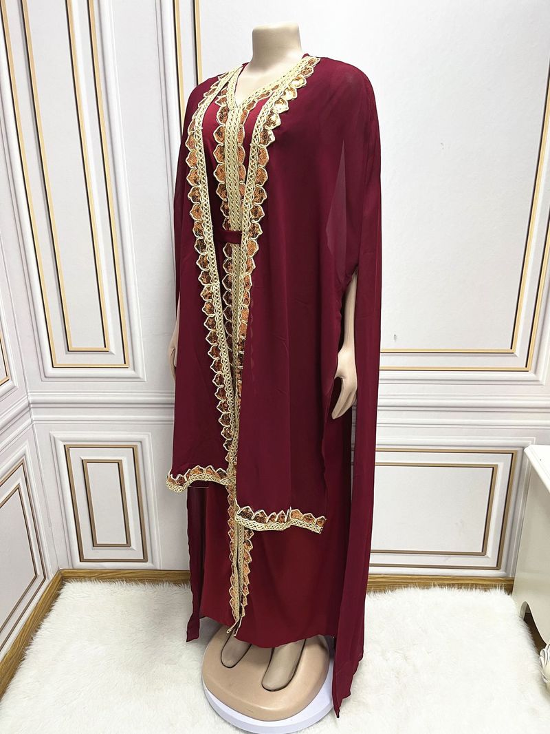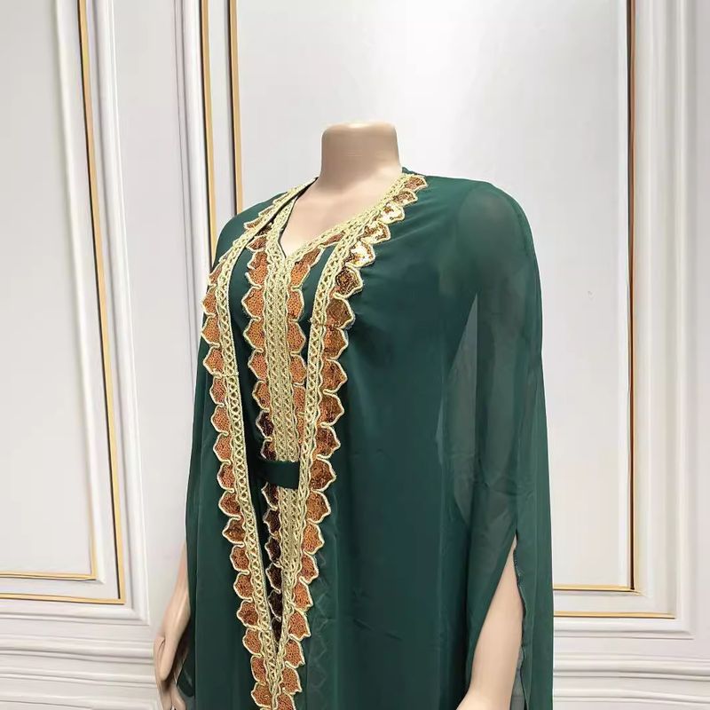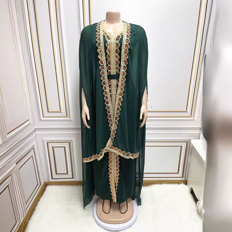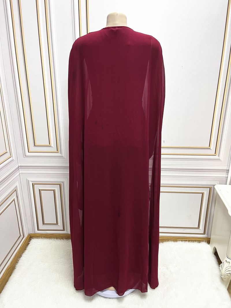 ملابس نسائية مسلمة عباية نسائية فستان بسيطة مناسبة شيفون زيّ من قطعتين مع Cape Robe