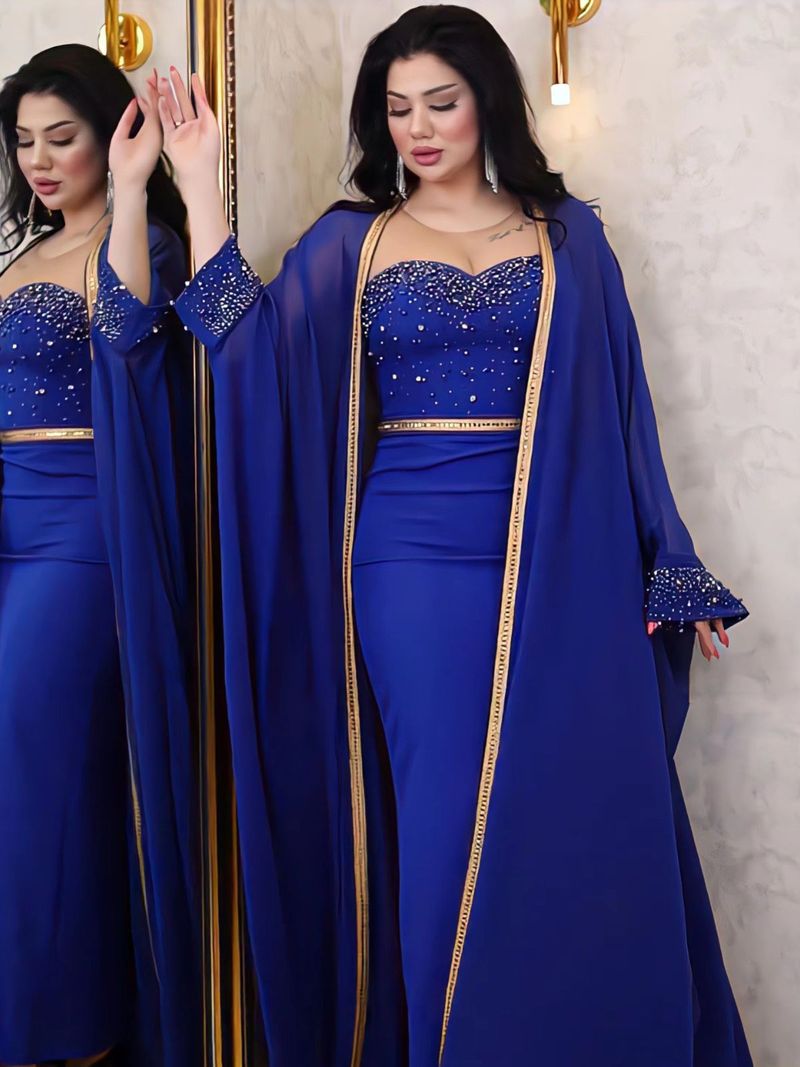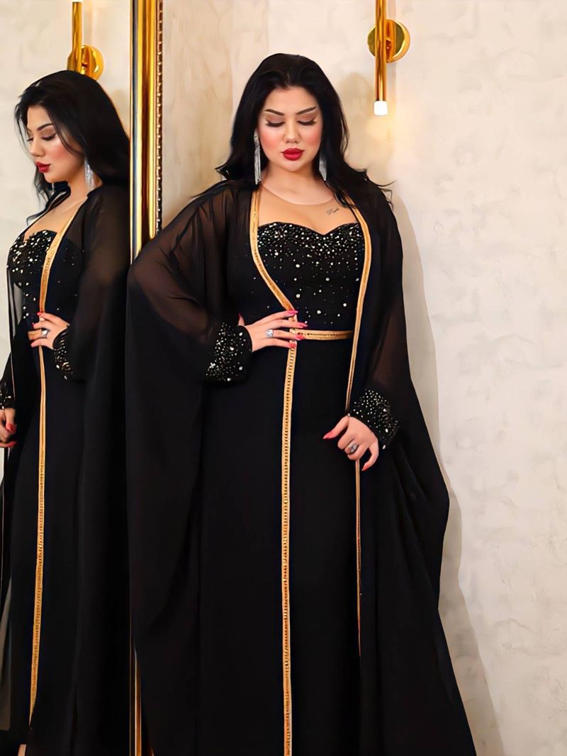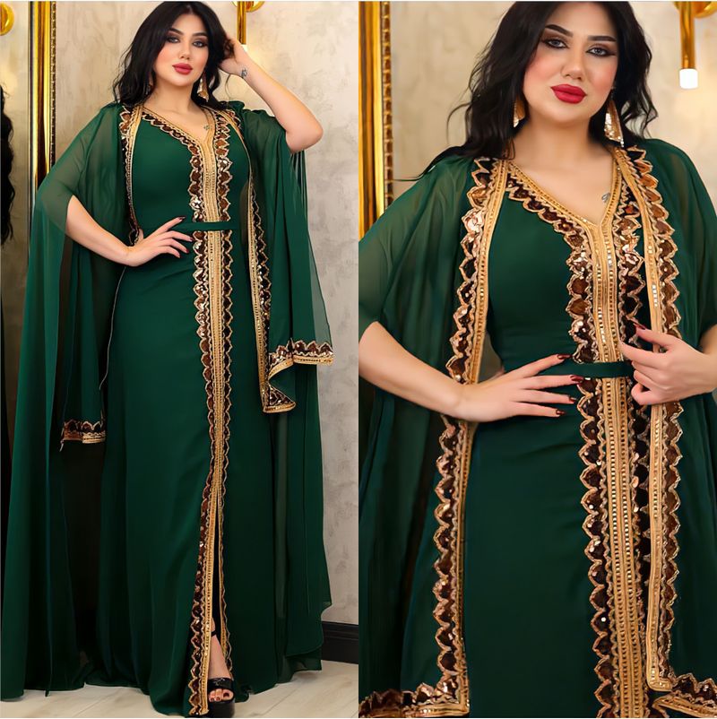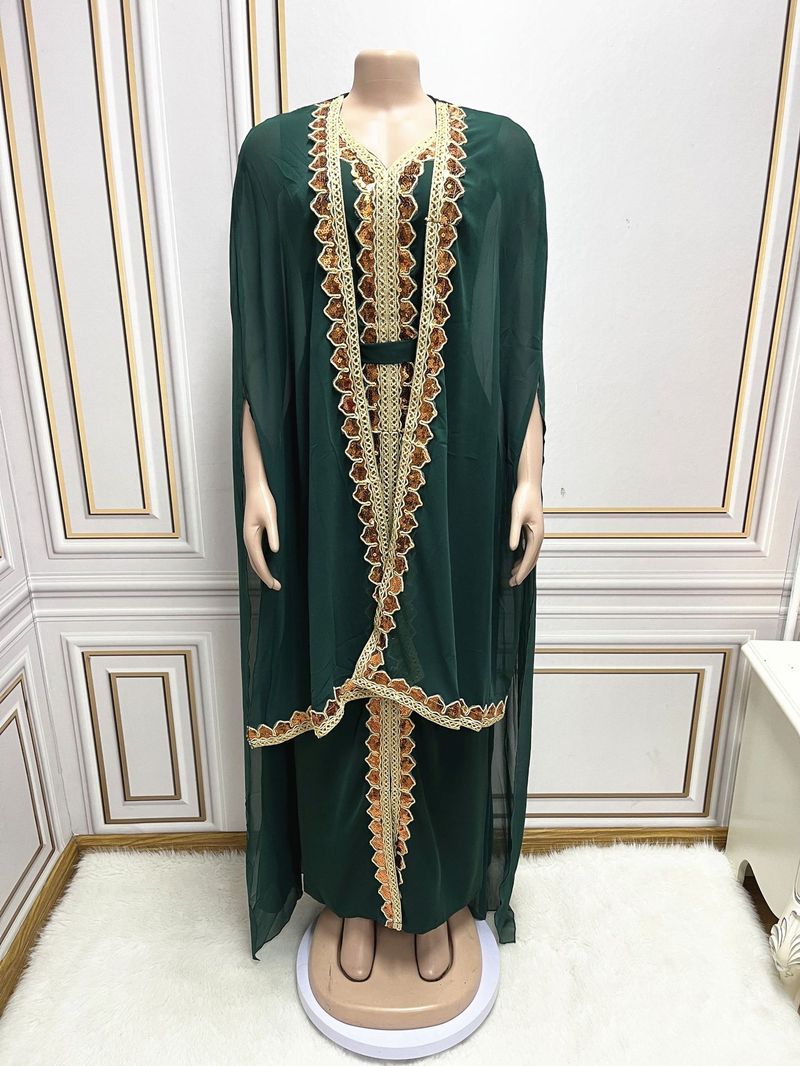 ملابس نسائية مسلمة عباية نسائية فستان بسيطة مناسبة شيفون زيّ من قطعتين مع Cape Robe