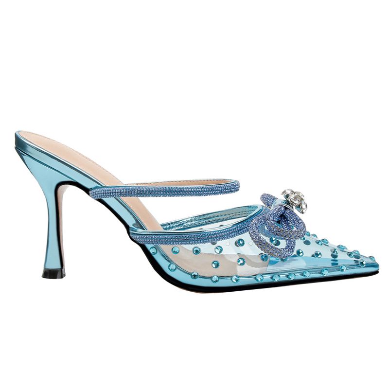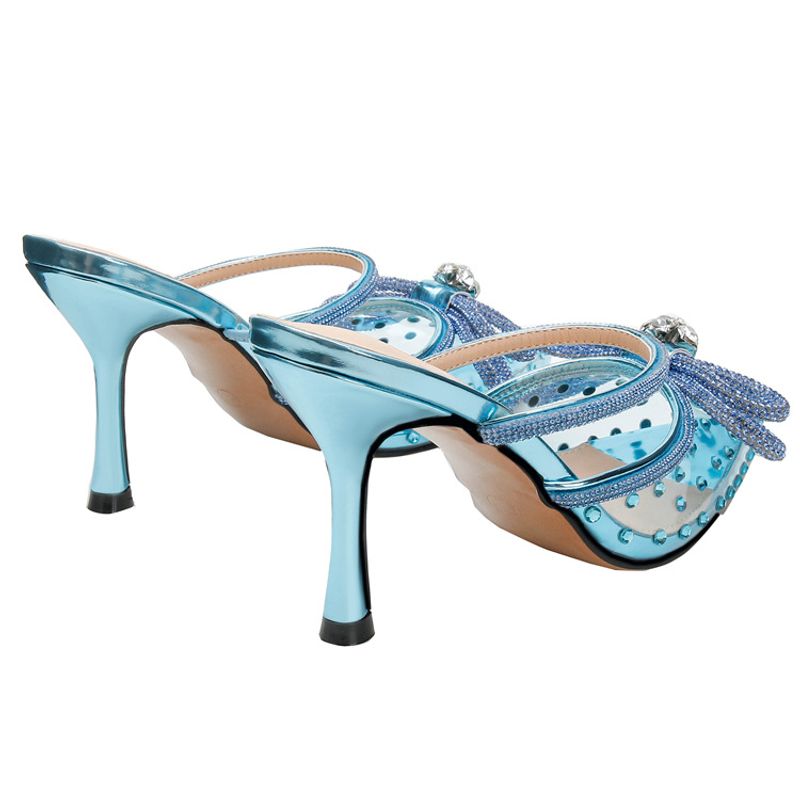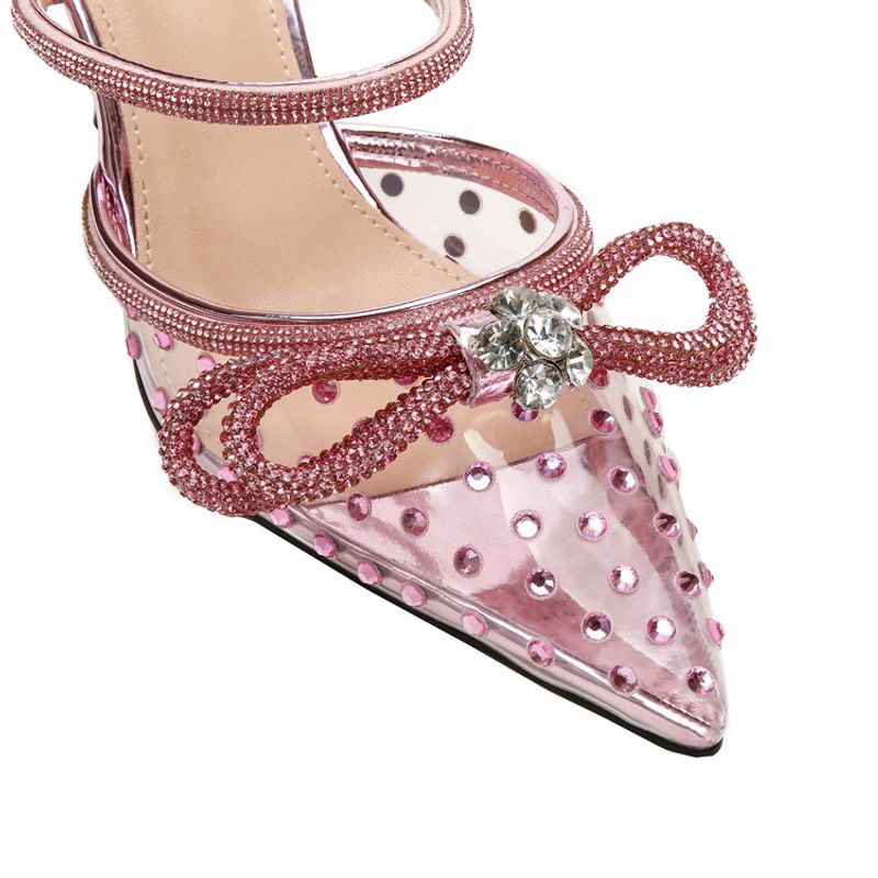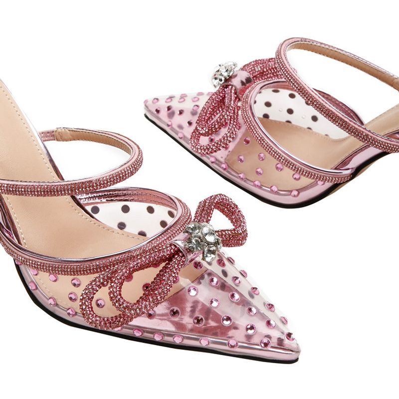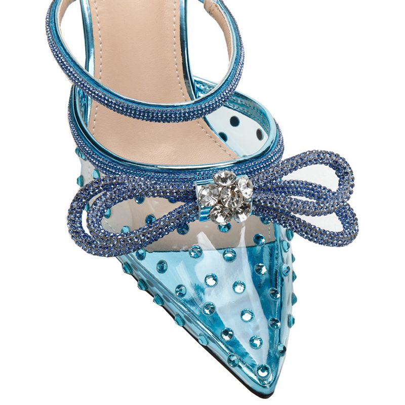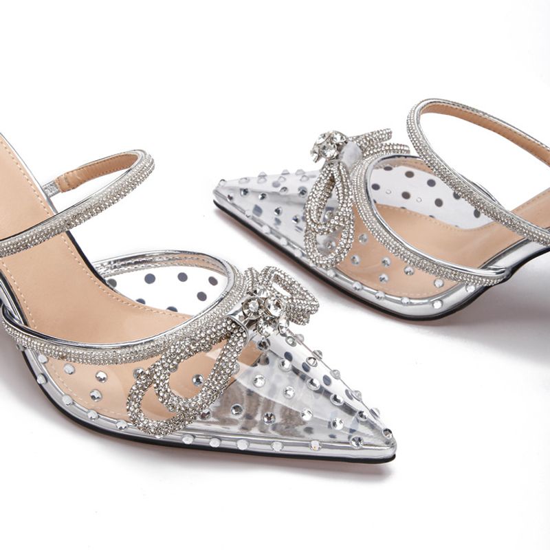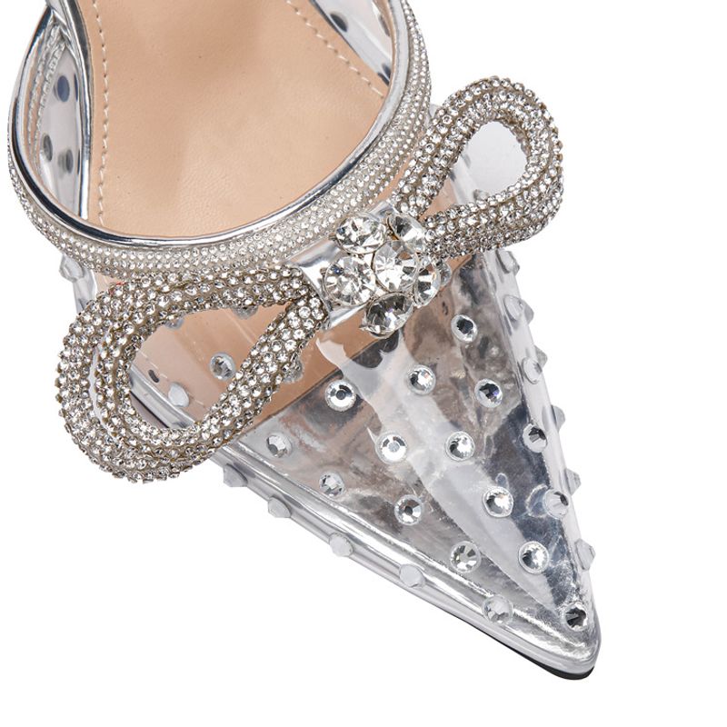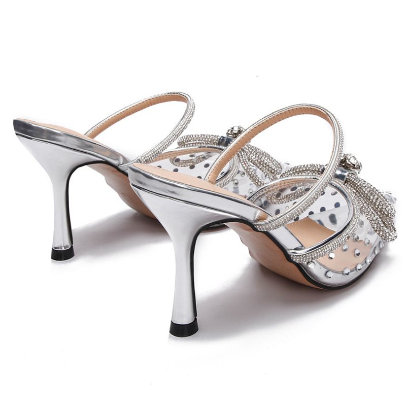 New rhinestone bow high-heeled sandals transparent pointy stilettos