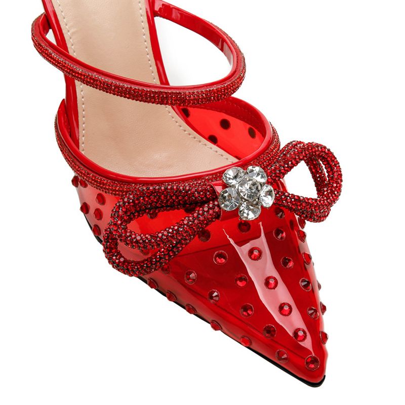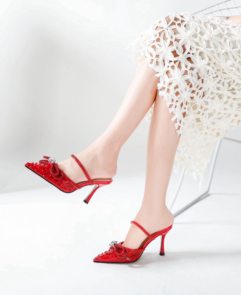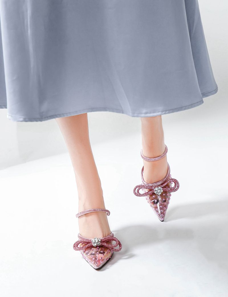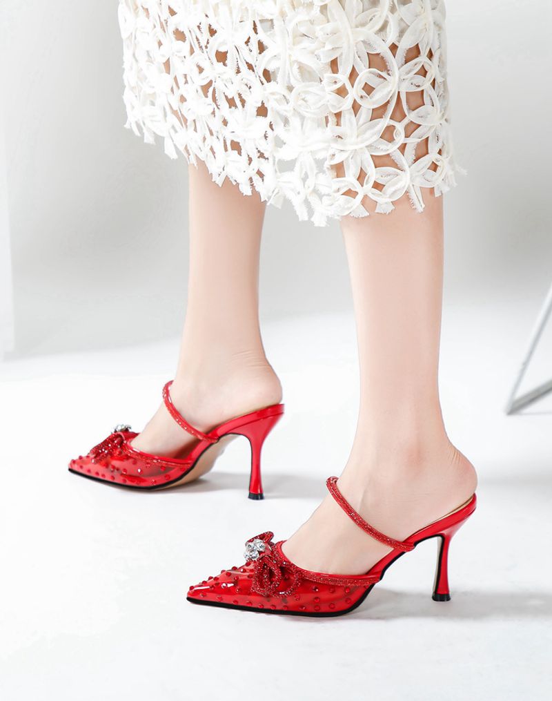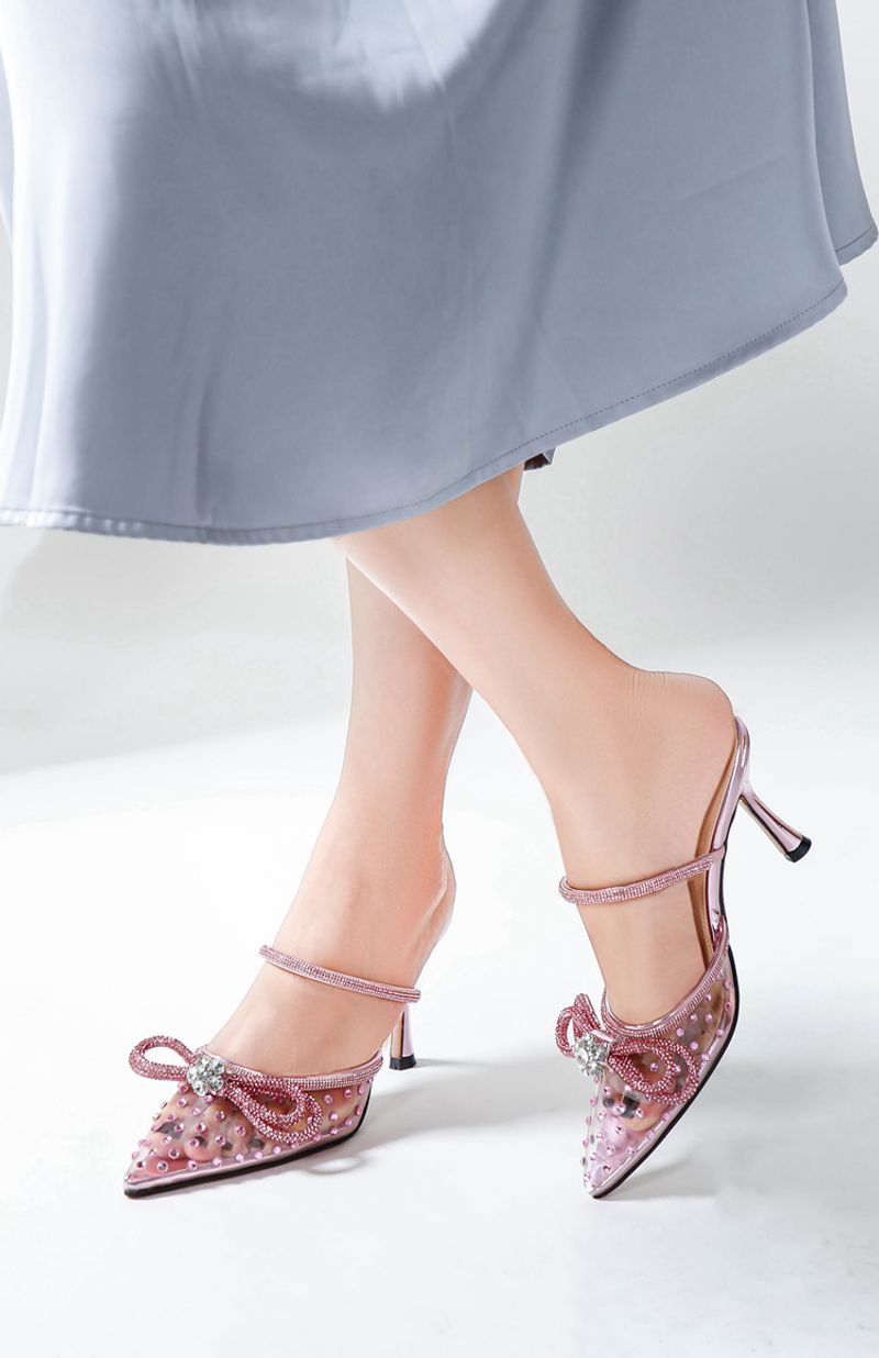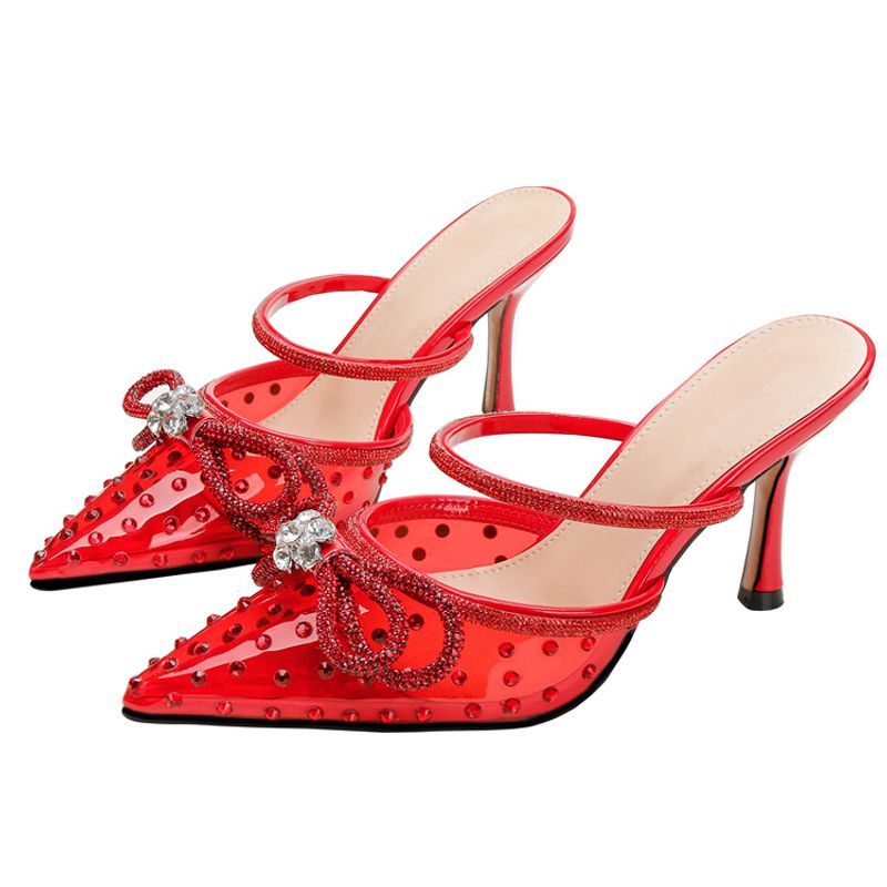 New rhinestone bow high-heeled sandals transparent pointy stilettos