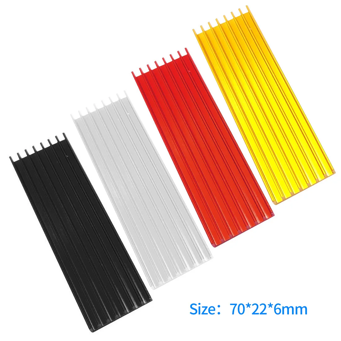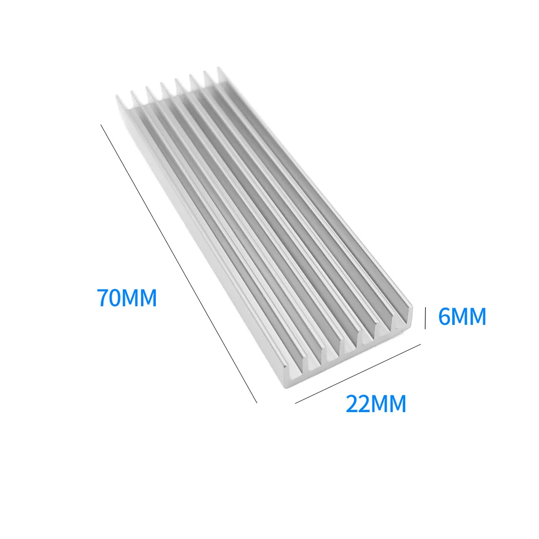 2 Sizes of Heatsink optional, 70*22*3mm and 70*22*6mm; 2 Designs of Heatsink showed as pictures. Please choose the item you like.