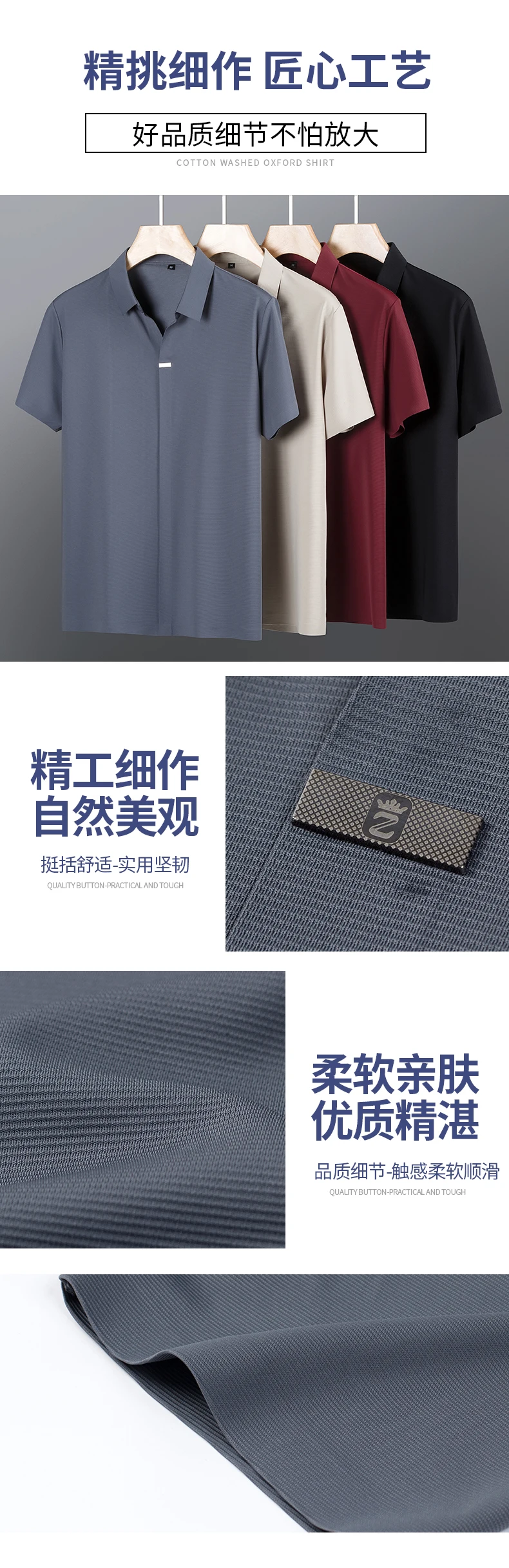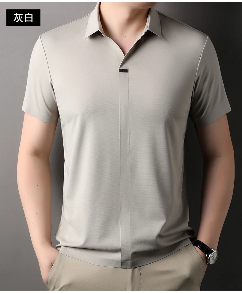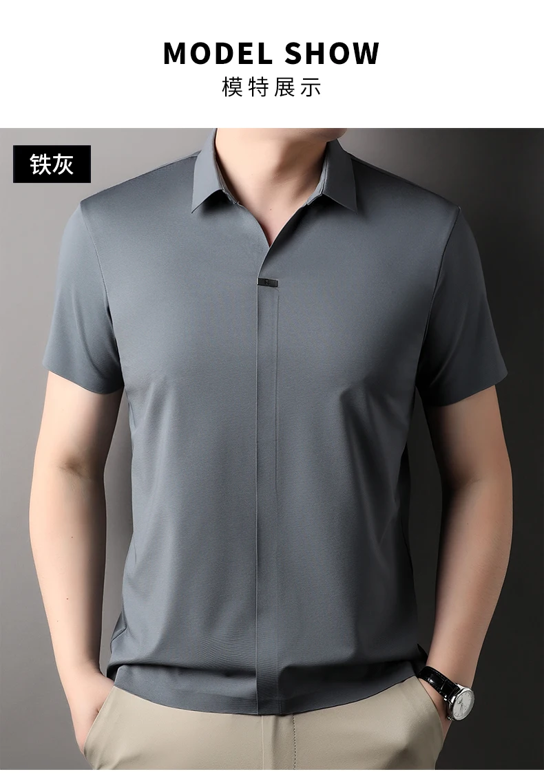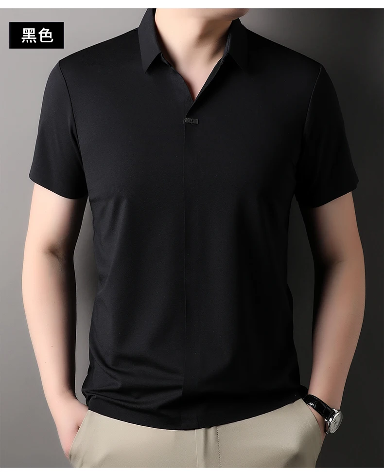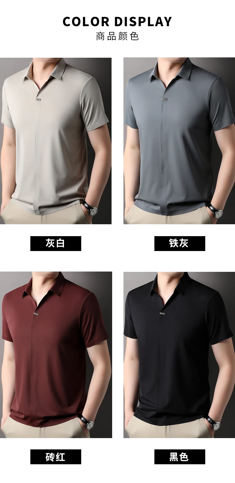 قميص بولو رجالي قصير الأكمام ، تيشيرت بلون واحد ، حرير صيفي ، حرير ثلجي ، تيشيرت عمل غير رسمي ، راقى ، ديكور كلاسيكي ،