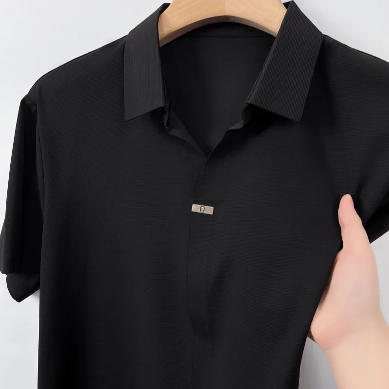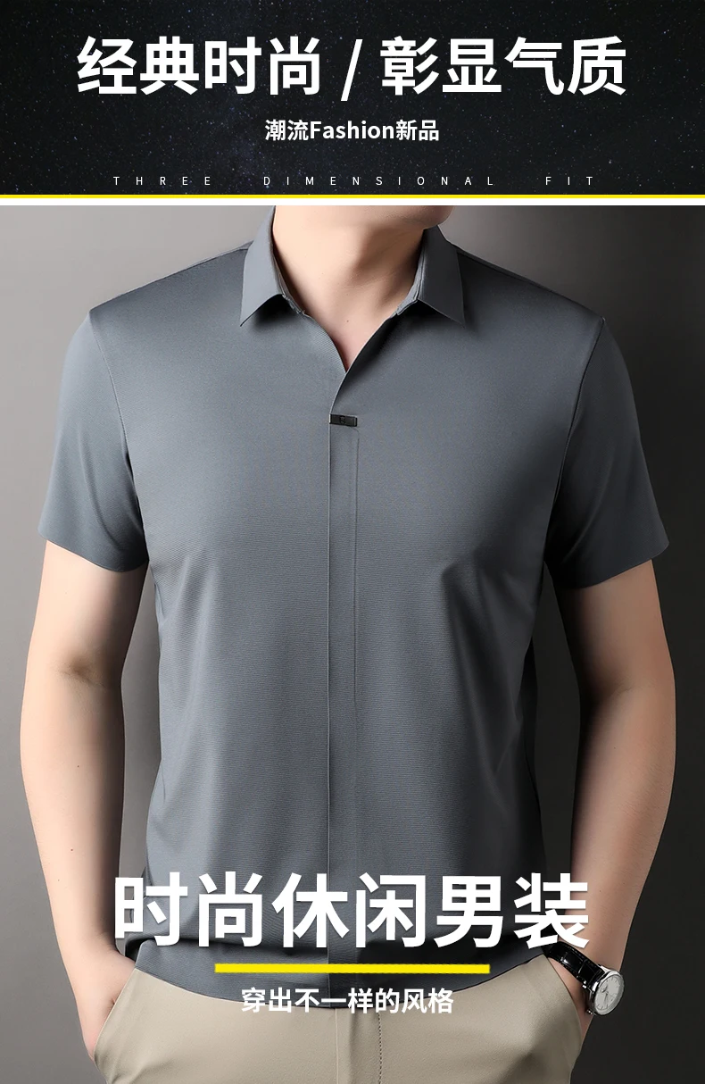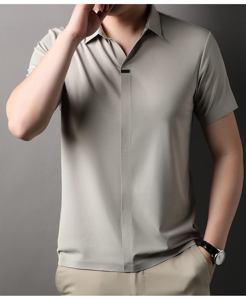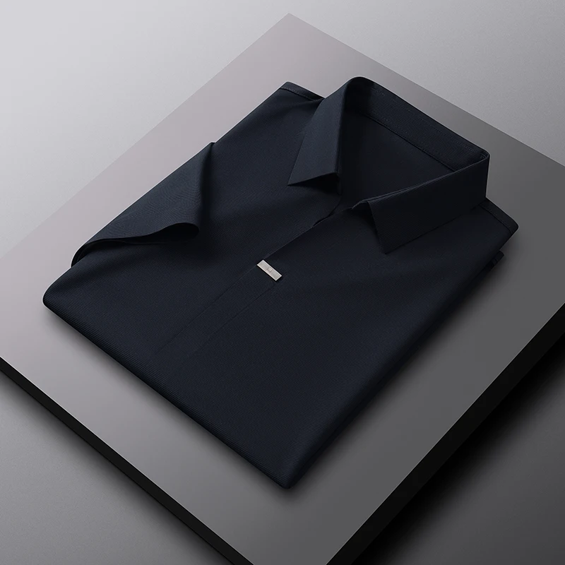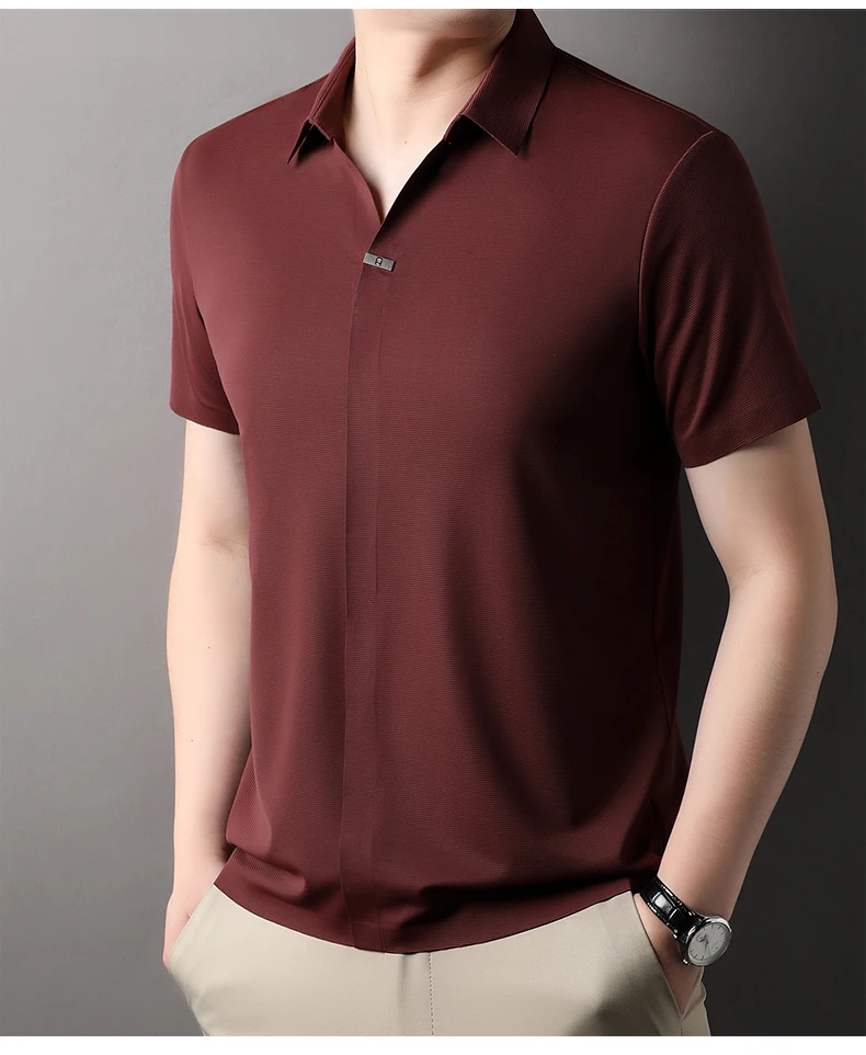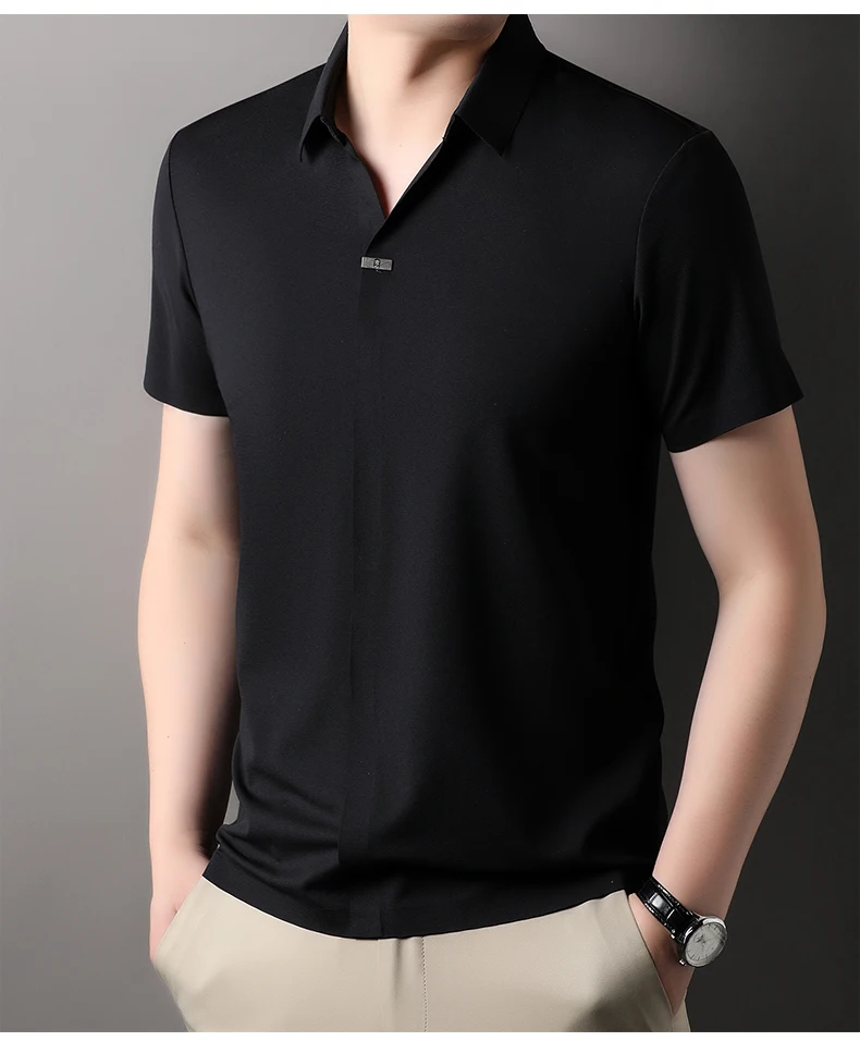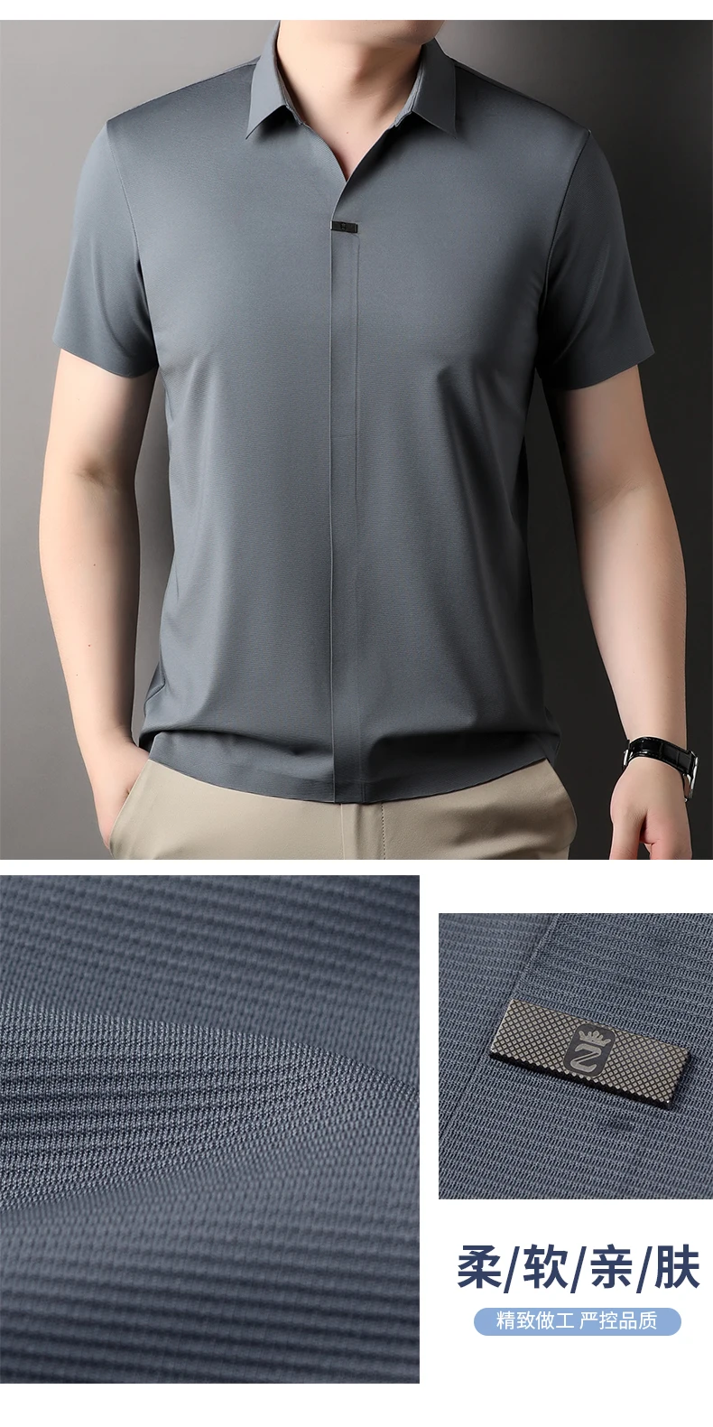 قميص بولو رجالي قصير الأكمام ، تيشيرت بلون واحد ، حرير صيفي ، حرير ثلجي ، تيشيرت عمل غير رسمي ، راقى ، ديكور كلاسيكي ،