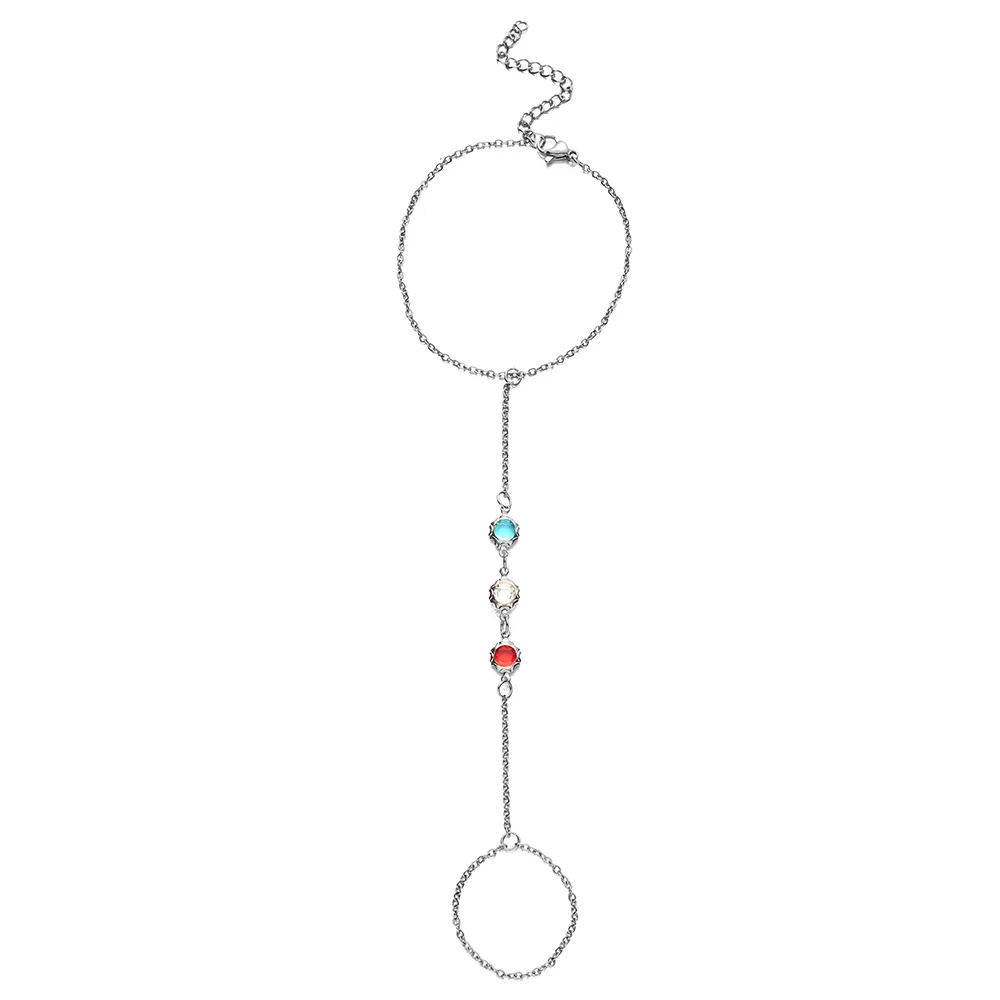 موضة جديدة بسيطة الفولاذ المقاوم للصدأ الملونة كريستال ربط سلسلة فنجر أساور للنساء فنجر اليد سلسلة مجوهرات هدايا