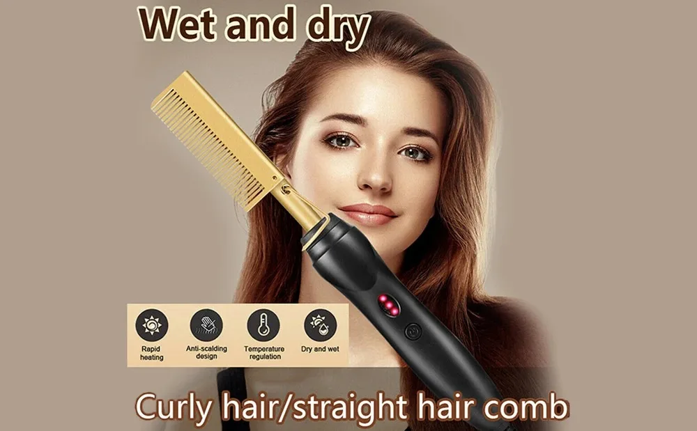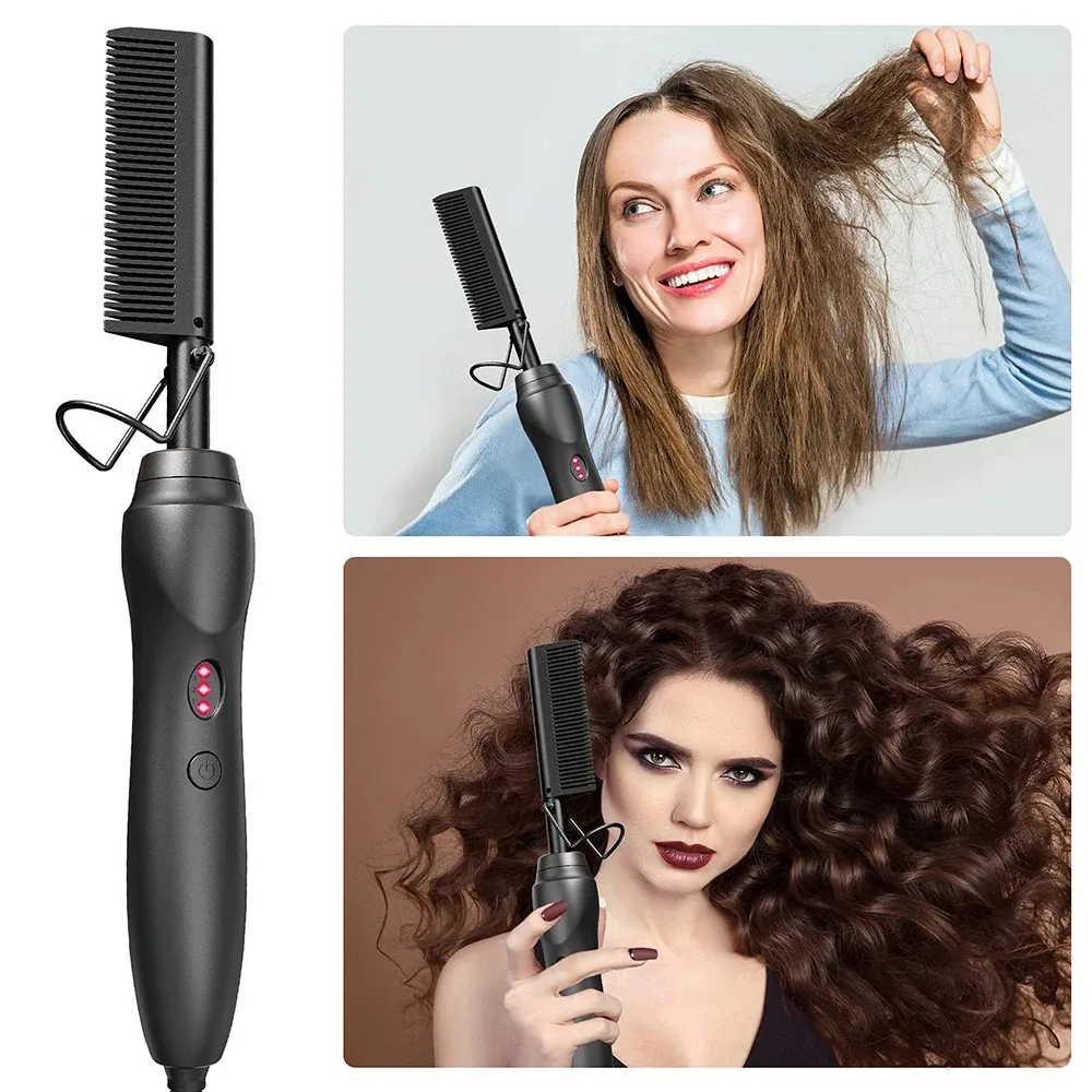 Hot Comb Hair Straightener Heat Pressing Combs Portable Ceramic Curling Iron for Hair Beard Wigs Wet and Dry Hair Styling Tools